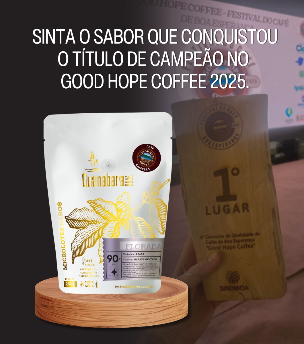 Com 91 pontos pela SCA, o Florada foi campeão do Good Hope Coffee 2025, o concurso de qualidade de cafés especiais de Boa Esperança (MG). Um verdadeiro símbolo da excelência e da paixão que movem a Guanabara Café.