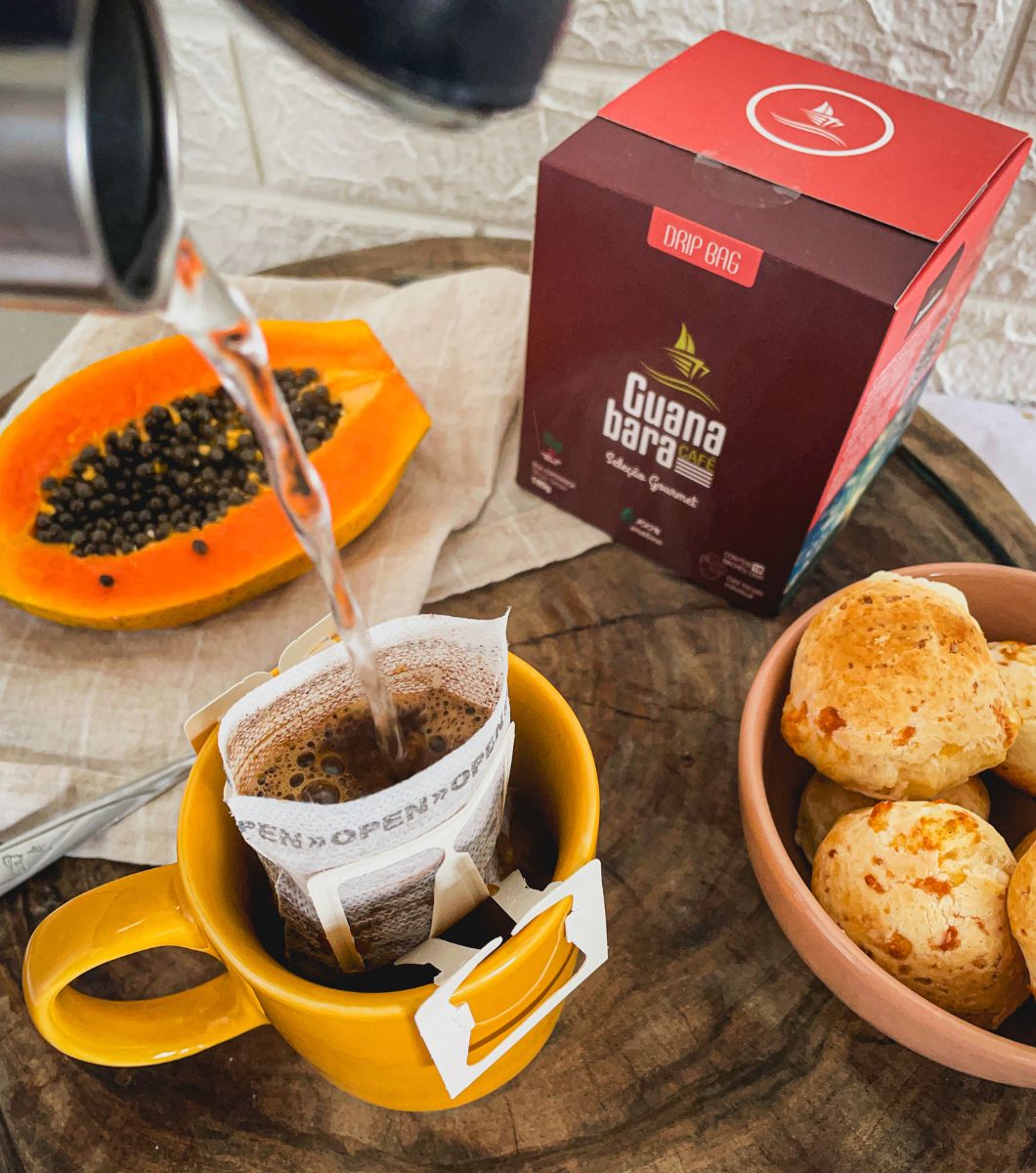 O sabor incorporado e suave do Guanabara Especial Clássico ficou ainda mais prático! Agora disponível em Drip Bag Coffee , ele proporciona uma experiência gourmet rápida e conveniente.